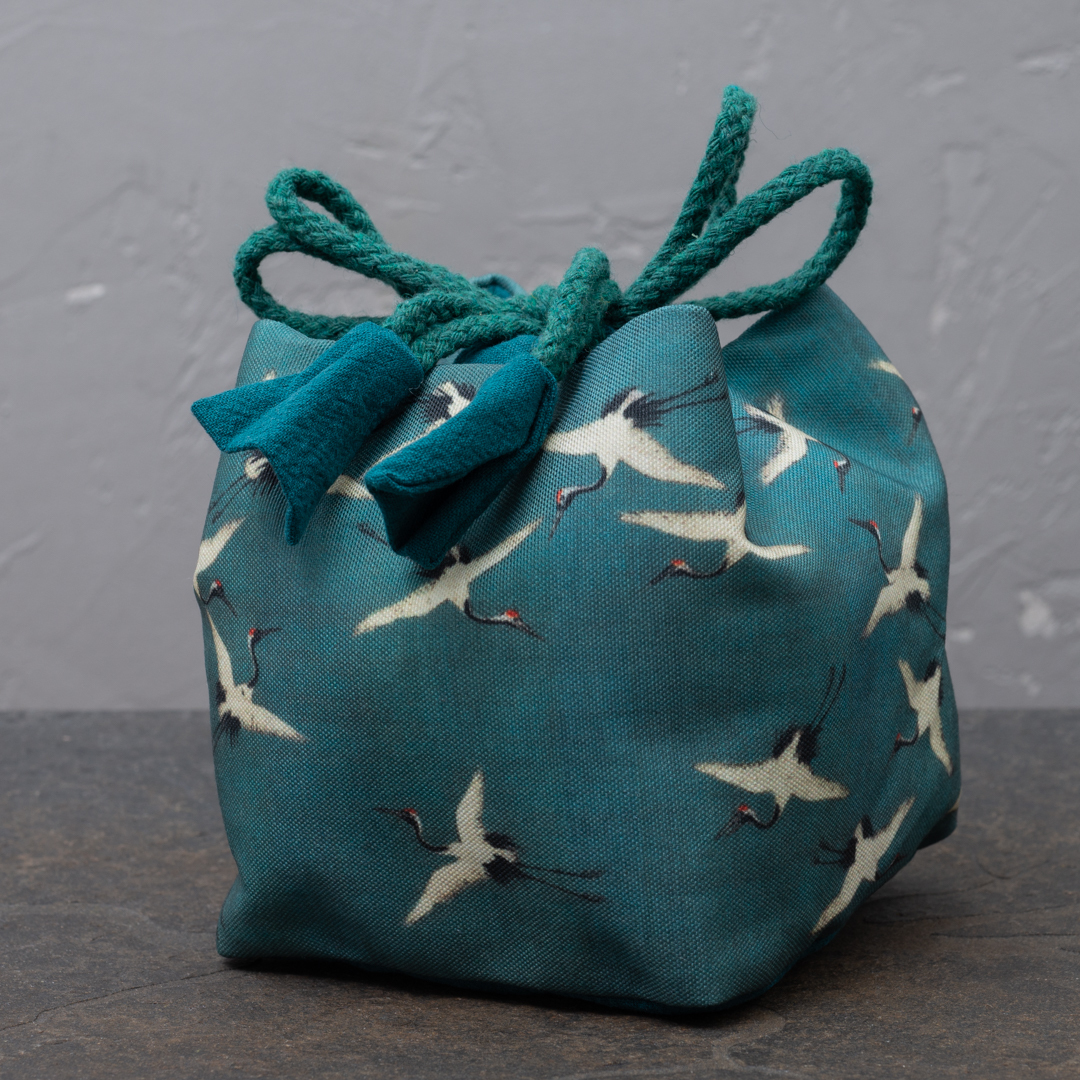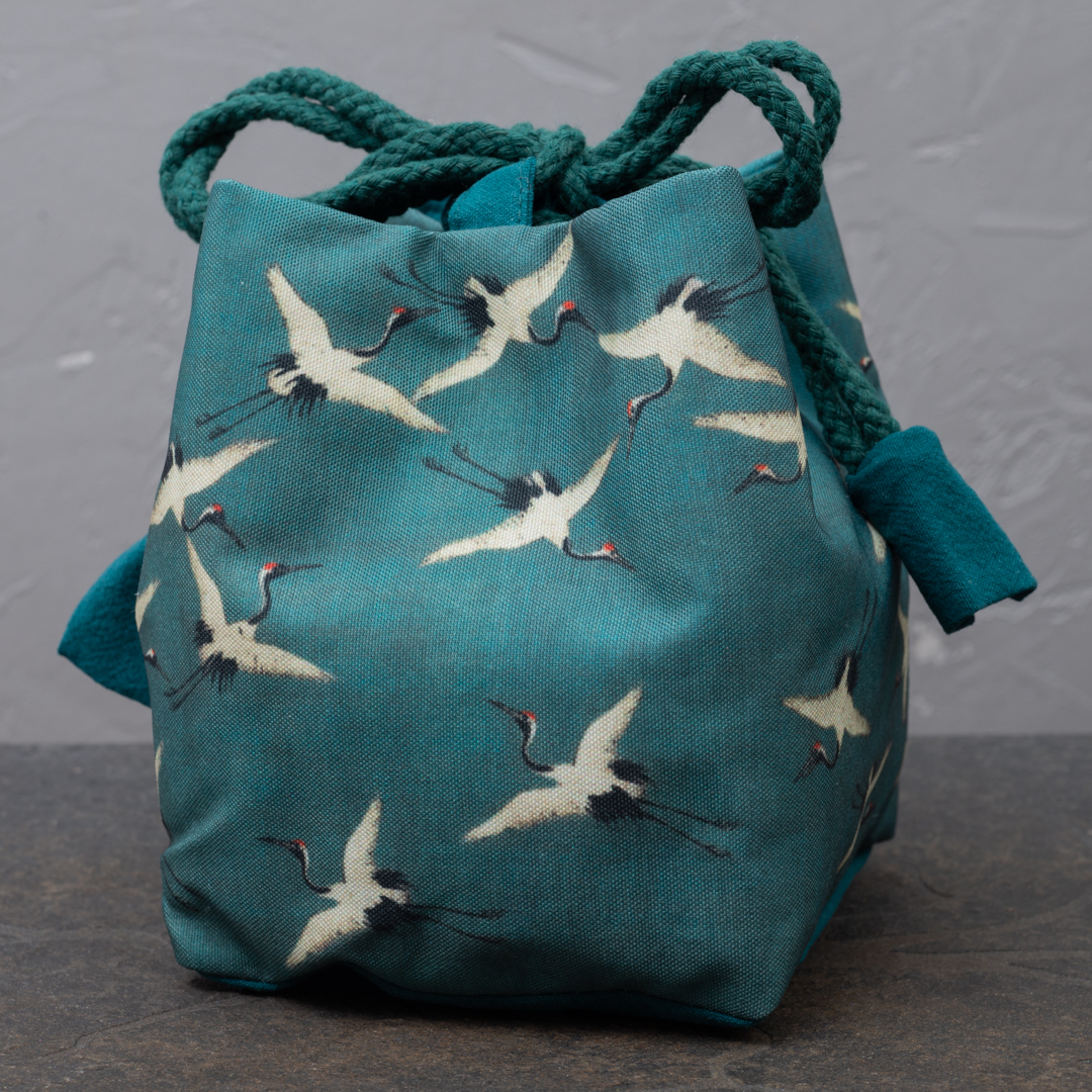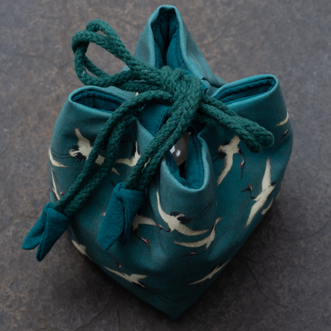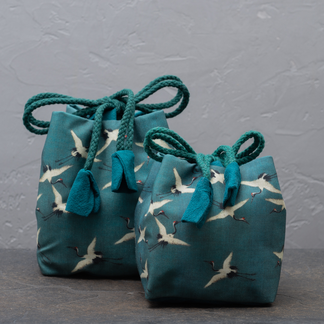 Зеленый тканевый мешочек "Журавли"