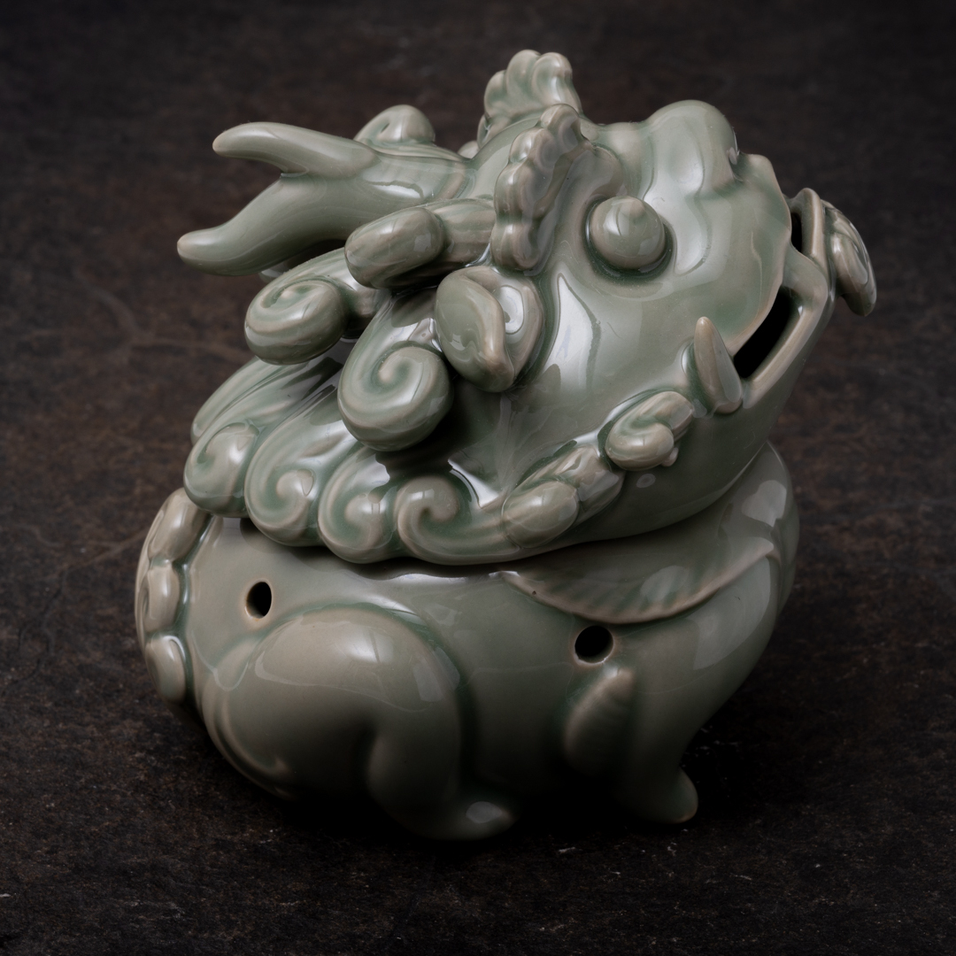 Крупная закрытая селадоновая курильница,