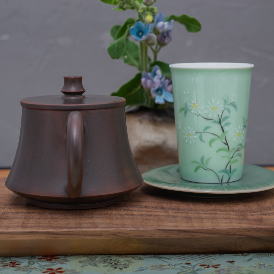 Круглая керамическая подставка под пиалу в виде листа лотоса.